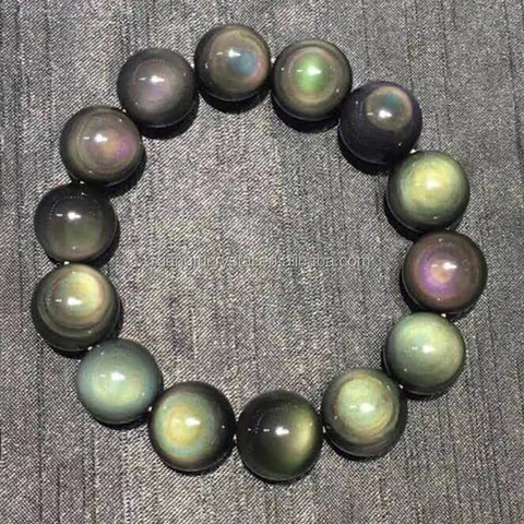 Pulsera de obsidiana Natural, brazalete de cristal con doble Ojo de arcoíris